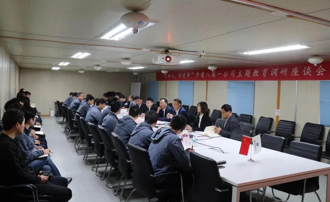 在項目部會議室,董文祥為海外領(lǐng)導(dǎo)班子、項目全體員工講授“守初心,擔(dān)使命,奮力譜寫‘中建八一’高質(zhì)量跨越發(fā)展新篇章”的主題黨課。指出,海外事業(yè)部自成立起就肩負(fù)著助推公司轉(zhuǎn)型升級、跨越發(fā)展的重要使命,對海外發(fā)展提出了“守初心,堅定大海外理想追求”、“擔(dān)使命,堅守戰(zhàn)略定力”、“抓落實(shí),力爭中建排頭”三點(diǎn)要求。隨后,董文祥組織召開了“守初心,擔(dān)使命”的主題教育調(diào)研座談會。