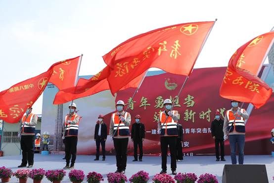 西安市團(tuán)委在公司中國(guó)國(guó)際絲路中心大廈項(xiàng)目舉辦青年突擊隊(duì)授旗儀式