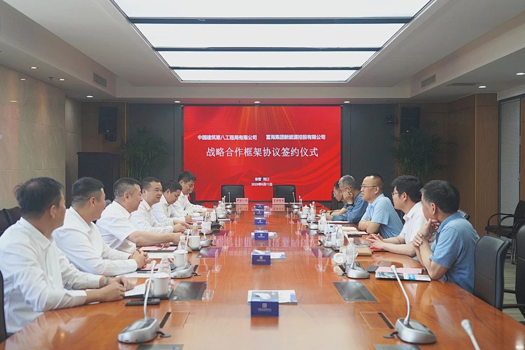 2025-06-12 中建八局與富??毓珊炇饝?zhàn)略合作框架協(xié)議 6月11日,中建八局與富海集團(tuán)新能源控股有限公司(簡稱富??毓桑┰跂|營市河口區(qū)簽署戰(zhàn)略合作框架協(xié)議。 富??毓煽偛昧螐V明,工程項(xiàng)目中心副總經(jīng)理唐運(yùn)通,中建八局副總經(jīng)理、江蘇分局黨委書記、局長劉書冬,山東分局副局長張敬存,一公司黨委書記、董事長、總經(jīng)理?;瘧?,副總經(jīng)理宮哲,富海控股運(yùn)營管理中心、工程項(xiàng)目中心、一公司青島公司相關(guān)負(fù)責(zé)人參加簽約儀式。