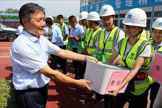 2019-08-20 山東省建設(shè)工會一行到濟(jì)南萬達(dá)文旅城項目開展 “送清涼”慰問暨 “黨建同創(chuàng)共建”座談會 8月20日上午,山東省建設(shè)工會主席薛希法、副主席邵永立一行到濟(jì)南萬達(dá)文旅城項目開展 “送清涼”慰問暨 “黨建同創(chuàng)共建”座談會,公司黨委副書記、工會主席李云,工會工作部部長方健,濟(jì)南公司總會計師李林林等參加了上述活動。 首先項目聯(lián)合黨支部書記劉細(xì)平就項目概況、黨群工作圍繞“一二三四五”共建好項目開展情況進(jìn)行了詳細(xì)匯報。