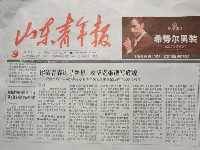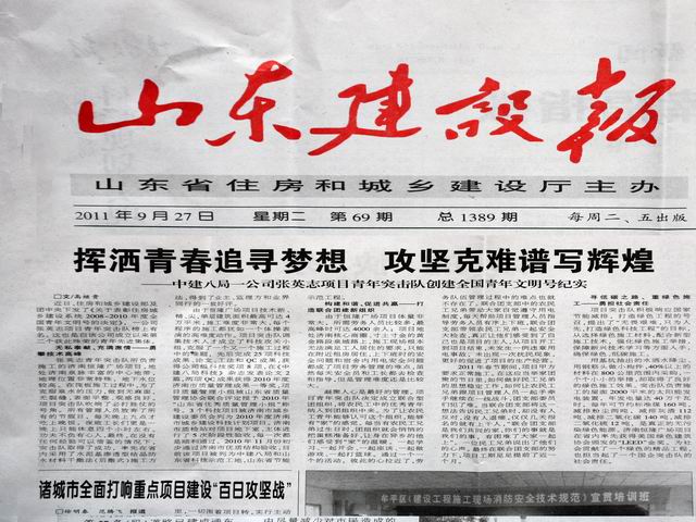 自公司張英志項目青年突擊隊榮獲“全國青年文明號”榮譽稱號以來,山東建設(shè)報、山東青年報等媒體相繼報道該突擊隊事跡。