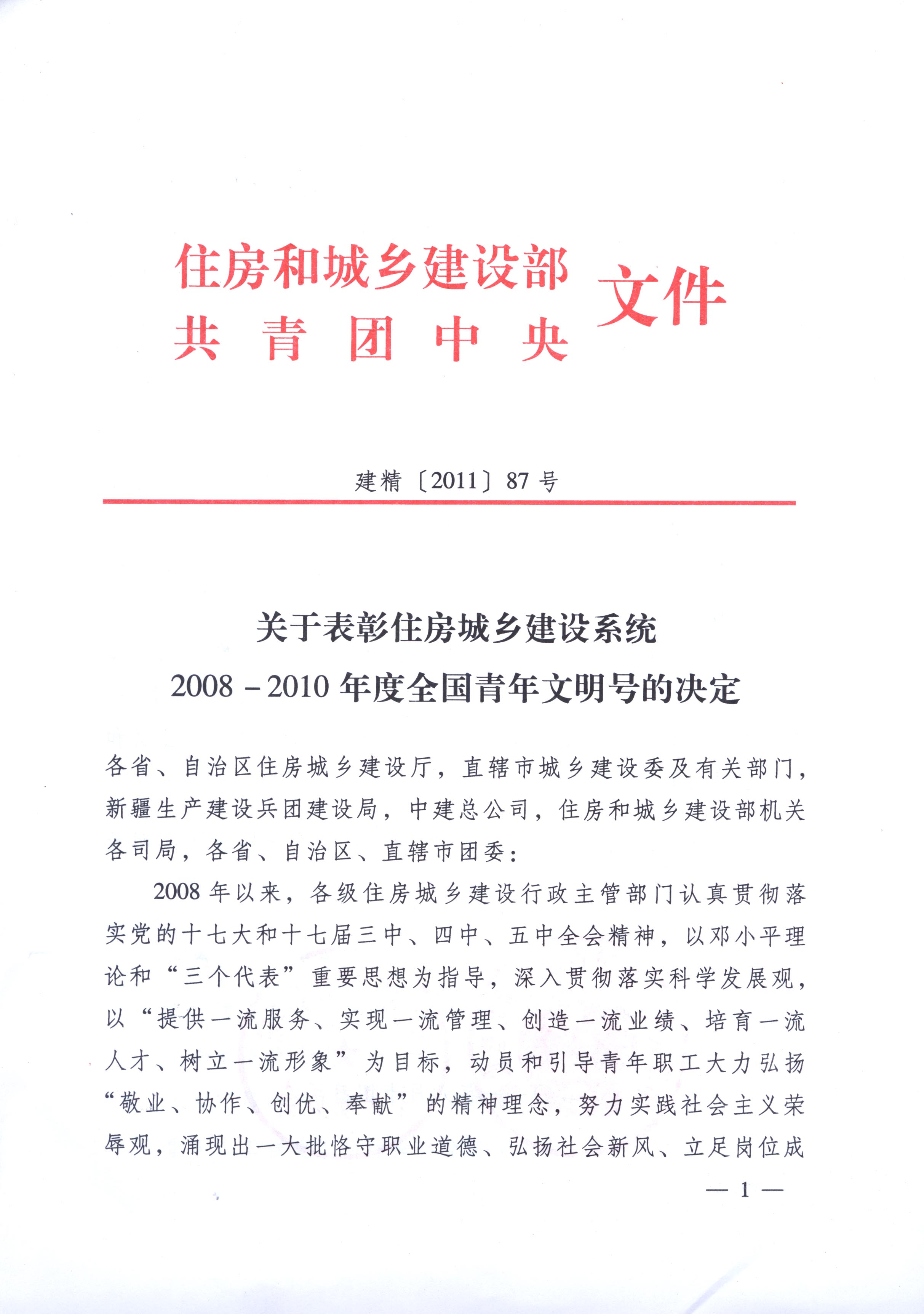 近日,住房和城鄉(xiāng)建設(shè)部及團中央下發(fā)了《關(guān)于表彰住房城鄉(xiāng)建設(shè)系統(tǒng)2008-2010年度全國青年文明號的決定》,公司張英志項目青年突擊隊榜上有名。這也是自該公司成立以來第二個獲此殊榮的青年先進集體。