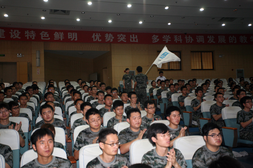 接下來的活動中,公司副總經(jīng)理寧文忠宣讀了公司“鐵軍講堂”創(chuàng)辦通知。董事長徐愛杰與黨委書記許紅為鐵軍講堂揭牌,標(biāo)志著中建八局一公司“鐵軍講堂”正式開班。徐董事長為新員工授予了代表中建精神的中建司旗,司旗在隊員手中依次傳遞,代表中建精神遍布四方。在之后的新員工代表和教官代表發(fā)言中,新員工表示一定不辜負(fù)公司領(lǐng)導(dǎo)的期望,在軍訓(xùn)中努力培養(yǎng)自己的鐵軍作風(fēng),盡快融入一公司這個鐵軍團(tuán)隊;而教官代表則表達(dá)了對做好新員工軍訓(xùn)的信心和決心。最后黨委書記許紅發(fā)表總結(jié)講話,許書記對新員工提出了明確的要求和期望。她指出,啟動此次校企合作和鐵軍講堂,旨在借助高校師資優(yōu)勢和新的培訓(xùn)形式,為公司各系統(tǒng)各崗位輸送需要的人才。并勉勵新員工要擺正心態(tài)、適應(yīng)角色轉(zhuǎn)換;集中精力,認(rèn)真學(xué)習(xí)思考;敢于吃苦,積極參加訓(xùn)練;加強(qiáng)溝通,增進(jìn)團(tuán)結(jié)交流。