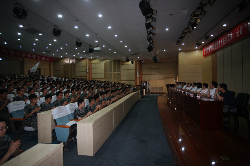 儀式上,公司董事長徐愛杰首先發(fā)表了熱情洋溢的致辭。他指出,此次校企合作對公司人才培養(yǎng)、科學(xué)研究、科技創(chuàng)新等各方面將產(chǎn)生積極的影響,標(biāo)志著公司與山東建筑大學(xué)的合作又登上了一個新的臺階。此外,人才資源已成為企業(yè)最為重要的戰(zhàn)略資源,此次鐵軍講堂,以“傳承鐵軍精神,打造鐵軍團(tuán)隊”為使命,以“育心、育行、育未來”為目標(biāo),定能為公司及時輸送和培養(yǎng)所需的優(yōu)秀人才。最后徐董事長對新員工的加盟表示了熱烈歡迎,并對新員工提出了殷切的期望。隨后山東建筑大學(xué)黨委副書記張書明為本次校企合作發(fā)表致辭。他指出: 衷心希望以此次合作為契機(jī),加快雙方的合作步伐,提高校企核心競爭能力,山東建筑大學(xué)也愿為一公司的發(fā)展提供更多的智力和技術(shù)支持。致辭結(jié)束后,徐愛杰董事長和劉�副校長分別代表企業(yè)和學(xué)校簽訂了校企合作協(xié)議書。