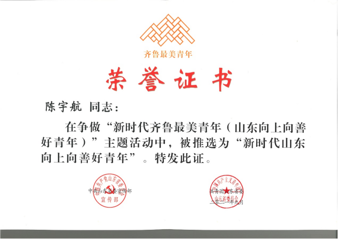 陳宇航榮獲“新時(shí)代山東向上向善好青年”!