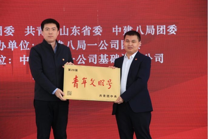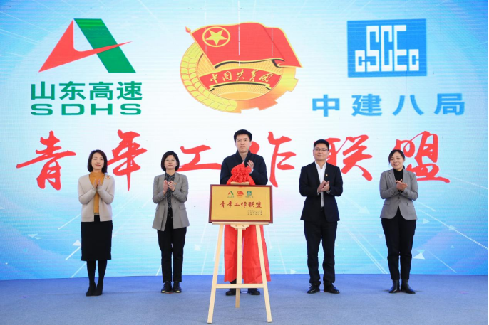 孫巍代表共青團(tuán)山東省委授予中建八局一公司智慧建造設(shè)計研發(fā)法務(wù)團(tuán)隊“山東省青年文明號”;授予中建八局一公司張傳奎項目團(tuán)隊“全國青年文明號”。隨后,團(tuán)省委、山東高速集團(tuán)、中建八局共同為“青年工作聯(lián)盟”揭牌。
