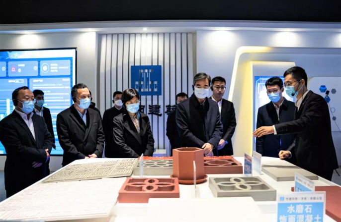 會談前,曾贊榮、單廣袖一行在中國建筑綠色產(chǎn)業(yè)園(濟(jì)南)調(diào)研了建筑產(chǎn)業(yè)化工廠、新型模架智造基地和幕墻產(chǎn)業(yè)基地,聽取產(chǎn)業(yè)園區(qū)生產(chǎn)建設(shè)情況匯報(bào),觀摩四代pc構(gòu)件生產(chǎn)線、自動鋼筋加工生產(chǎn)線運(yùn)行情況,察看項(xiàng)目自主研發(fā)的智慧工廠管理平臺,了解透光混凝土掛板、保溫一體化掛板等產(chǎn)品情況和項(xiàng)目年產(chǎn)能、生產(chǎn)規(guī)模等運(yùn)營情況。