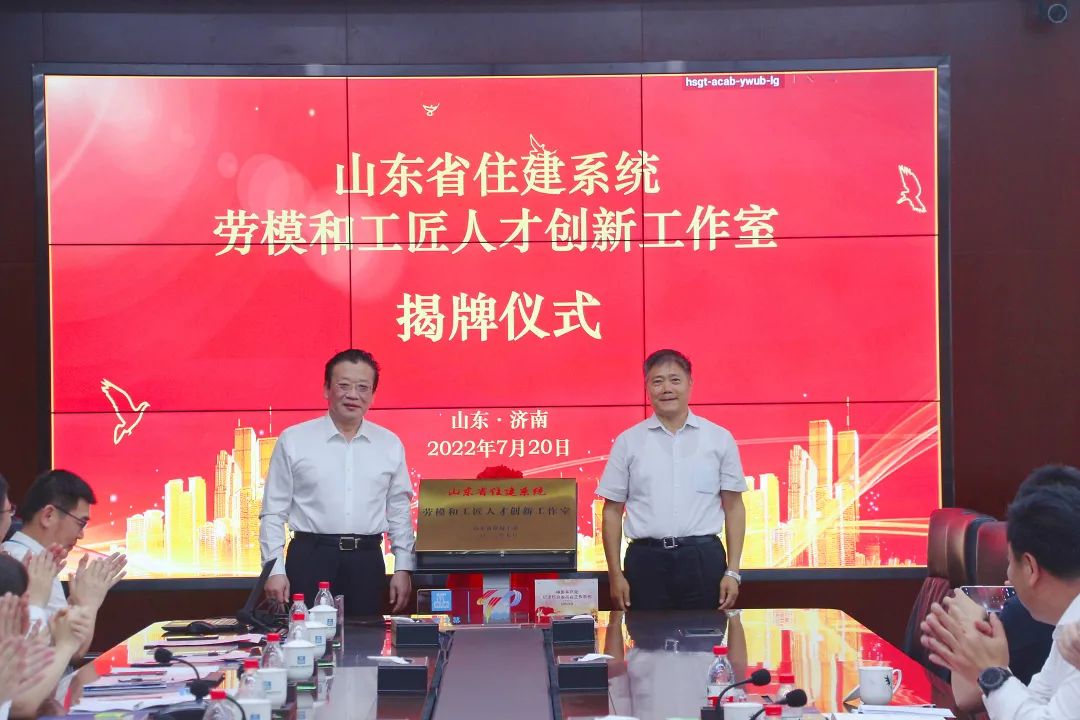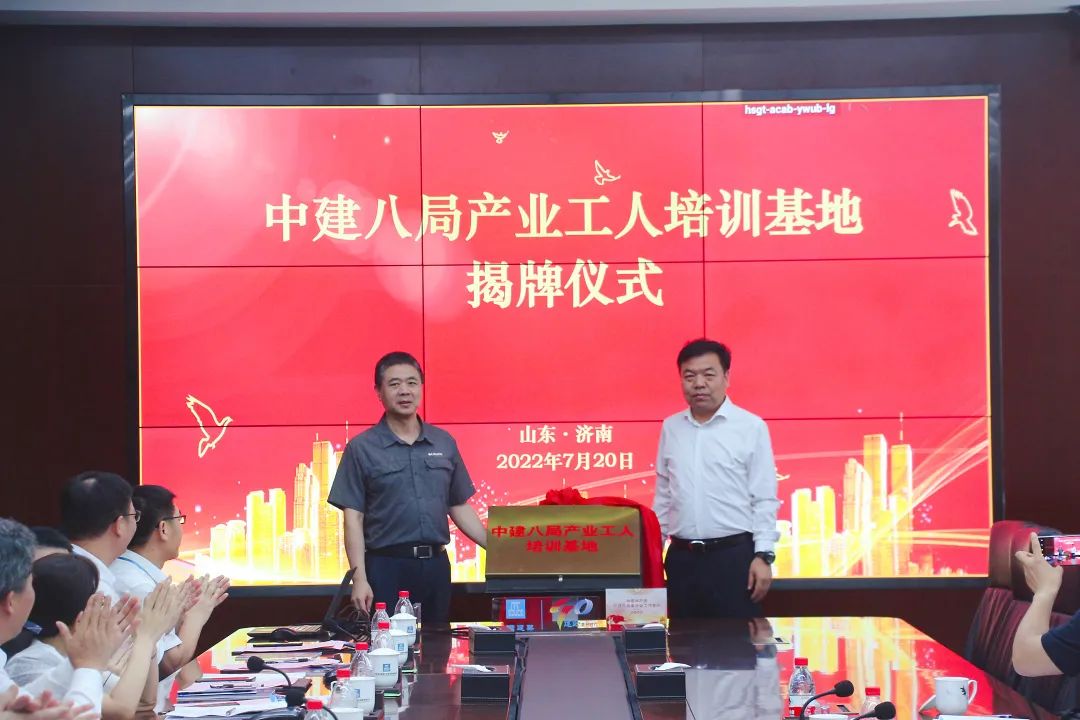吳疆、劉建波為中建八局產(chǎn)業(yè)工人培訓基地揭牌,薛希法、于金偉為山東省住建系統(tǒng)勞模和工匠人才創(chuàng)新工作室揭牌。