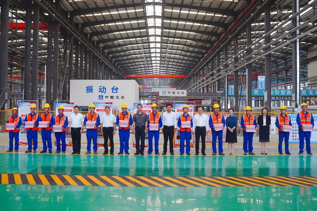 期間,與會領導為產(chǎn)業(yè)工人送上慰問金和慰問品,參觀了中建八局產(chǎn)業(yè)工人培訓基地,詳細了解產(chǎn)業(yè)工人思想引領、培訓體系、師資力量、培訓設施、生活配套等內(nèi)容,察看了項目自主研發(fā)的智慧工廠管理平臺及新型建筑材料等,了解項目年產(chǎn)能、生產(chǎn)規(guī)模等運營情況。