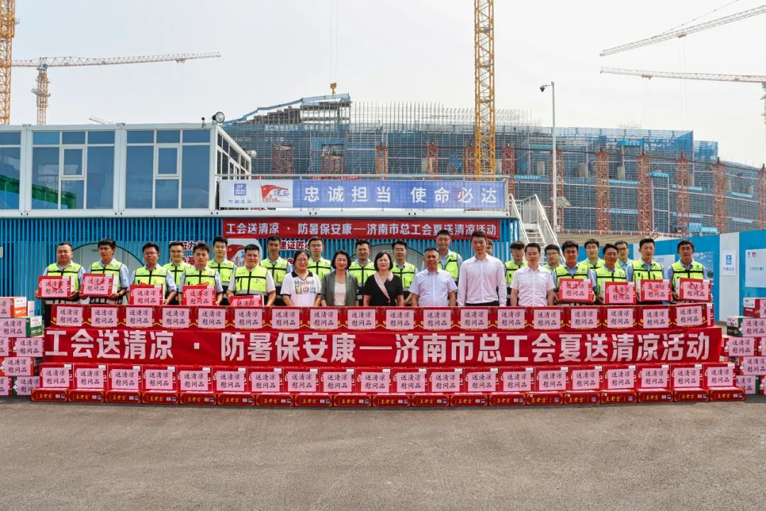 濟(jì)南市總工會(huì)赴濟(jì)南黃河體育中心專(zhuān)業(yè)足球場(chǎng)項(xiàng)目開(kāi)展“夏送清涼”慰問(wèn)活動(dòng)