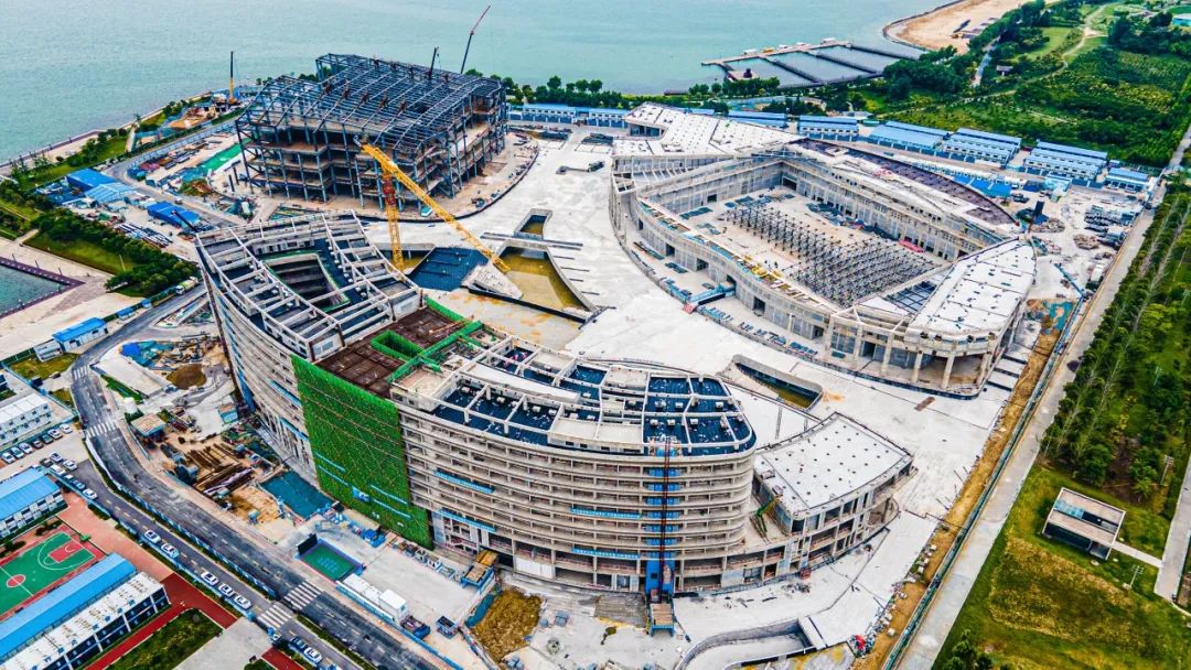 目前,項目主體結(jié)構(gòu)完成約95%,酒店及會展中心區(qū)域已全面封頂,正處于二次結(jié)構(gòu)、鋼結(jié)構(gòu)及裝飾裝修階段。