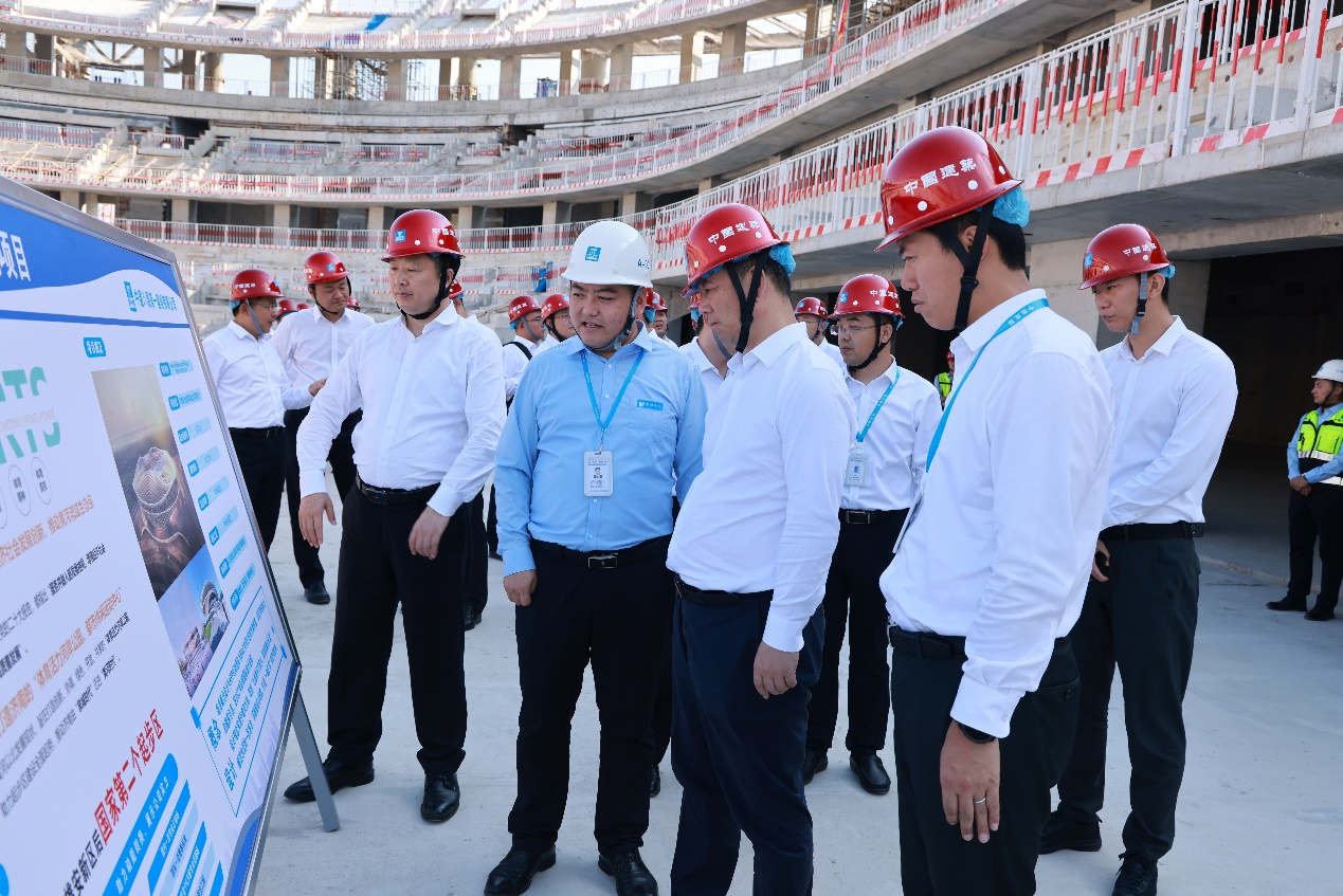 當(dāng)天下午,調(diào)研組一行到黃河體育場項目現(xiàn)場調(diào)研,實地查看了施工現(xiàn)場,參觀了黨建展廳,聆聽了項目綜合匯報,了解項目履約管理、商務(wù)管理、創(chuàng)新技術(shù)應(yīng)用等方面情況,詳細(xì)詢問了解項目在提升精益管控、人均效能方面的具體做法,了解公司制度規(guī)范的落地實施情況。