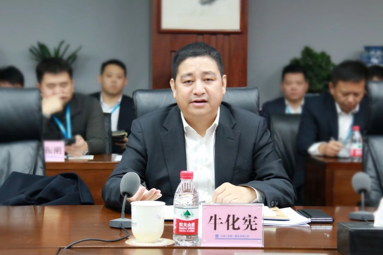 中建八局一公司黨委書記、董事長齊朋,黨委副書記、總經(jīng)理?;瘧椀阮I(lǐng)導(dǎo)班子成員,總部部門副職及以上人員參會。公司副總經(jīng)理霍文濤主持會議。