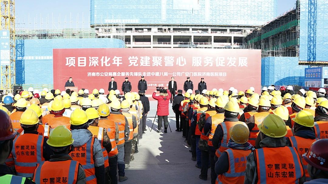 1月24日,濟(jì)南市公安局惠企服務(wù)先鋒隊(duì)到公司承建的中國中醫(yī)科學(xué)院廣安門醫(yī)院濟(jì)南醫(yī)院項(xiàng)目,開展“項(xiàng)目深化年 黨建聚警心 服務(wù)促發(fā)展”主題活動(dòng),為項(xiàng)目普及法律與急救知識并開展愛心義診。