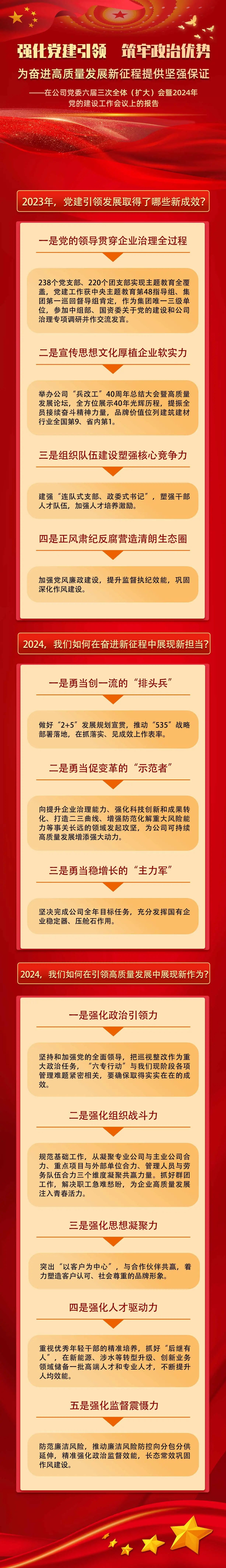 在公司黨委六屆三次全體(擴大)會暨2024年黨的建設工作會議上,齊朋作題為《強化黨建引領 筑牢政治優(yōu)勢 為奮進高質量發(fā)展新征程提供堅強保證》的報告。