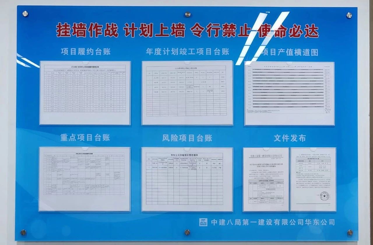 掛圖作戰(zhàn),計劃上墻。中建八一積極響應局建立“掛圖作戰(zhàn)”工作機制的要求,落實分局“履約管理 掛圖作戰(zhàn)”實施指南,在公司總部、二級單位、項目3個層面全覆蓋開展“掛圖作戰(zhàn)”,計劃、目標一目了然,多措并舉助推項目高效建造、價值創(chuàng)造。