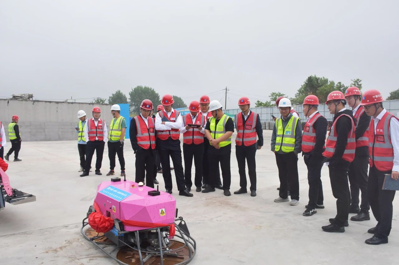 培訓(xùn)期間,全體學(xué)員來(lái)到黃島中醫(yī)醫(yī)院項(xiàng)目建設(shè)現(xiàn)場(chǎng),觀摩智能施工機(jī)器人操作與使用。目前,項(xiàng)目穩(wěn)步推行現(xiàn)場(chǎng)施工操作機(jī)械化,在主體階段已應(yīng)用布料、整平、抹光及測(cè)量4款機(jī)器人,預(yù)計(jì)未來(lái)共有20款機(jī)器人投入使用,旨在形成混凝土、二次結(jié)構(gòu)、安裝、裝飾綜合場(chǎng)景機(jī)器人集群,打造操作機(jī)械化示范項(xiàng)目。