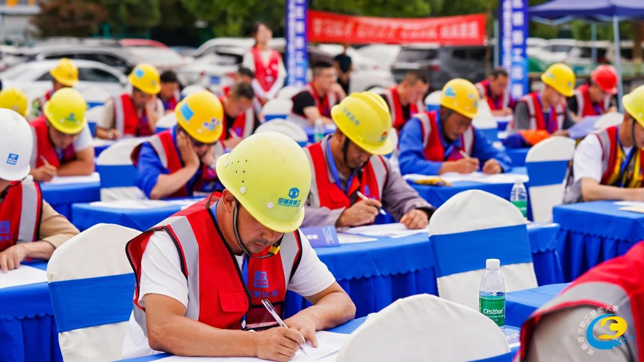 開幕式上裁判長現(xiàn)場抽取了理論考試題目。與會(huì)領(lǐng)導(dǎo)共同為建證“金藍(lán)領(lǐng)”黨建共建揭牌,并為項(xiàng)目建設(shè)一線工友代表送上慰問品。