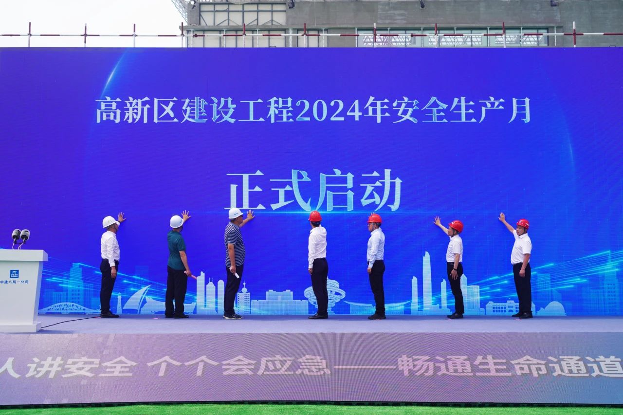 活動中,袁洋宣讀《高新區(qū)2024年“安全生產(chǎn)月”活動實施方案》;中建八局一公司作為參建單位代表作表態(tài)發(fā)言。