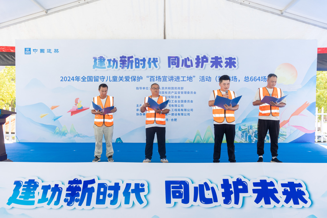 8月22日,由民政部、國務(wù)院國資委全國婦聯(lián)、中國海員建設(shè)工會(huì)指導(dǎo),中建集團(tuán)主辦、中建八局承辦、中建八局一公司協(xié)辦的2024年全國留守兒童關(guān)愛保護(hù)“百場宣講進(jìn)工地”活動(dòng)(第64場)走進(jìn)合肥金融廣場項(xiàng)目。