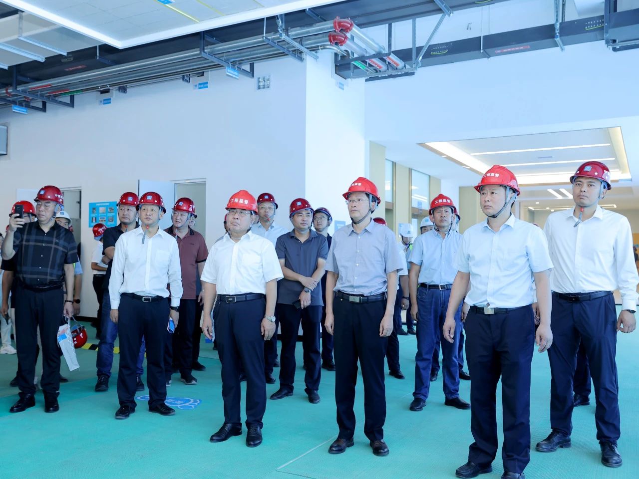 啟動儀式結(jié)束后,與會人員一同參觀了實(shí)體觀摩區(qū)及項(xiàng)目綜合展廳,就技術(shù)創(chuàng)新、質(zhì)量創(chuàng)優(yōu)、低碳建造、智慧工地等方面進(jìn)行交流,對屋面、車庫地面、墻面等施工工序樣板及質(zhì)量亮點(diǎn)做法表示肯定。