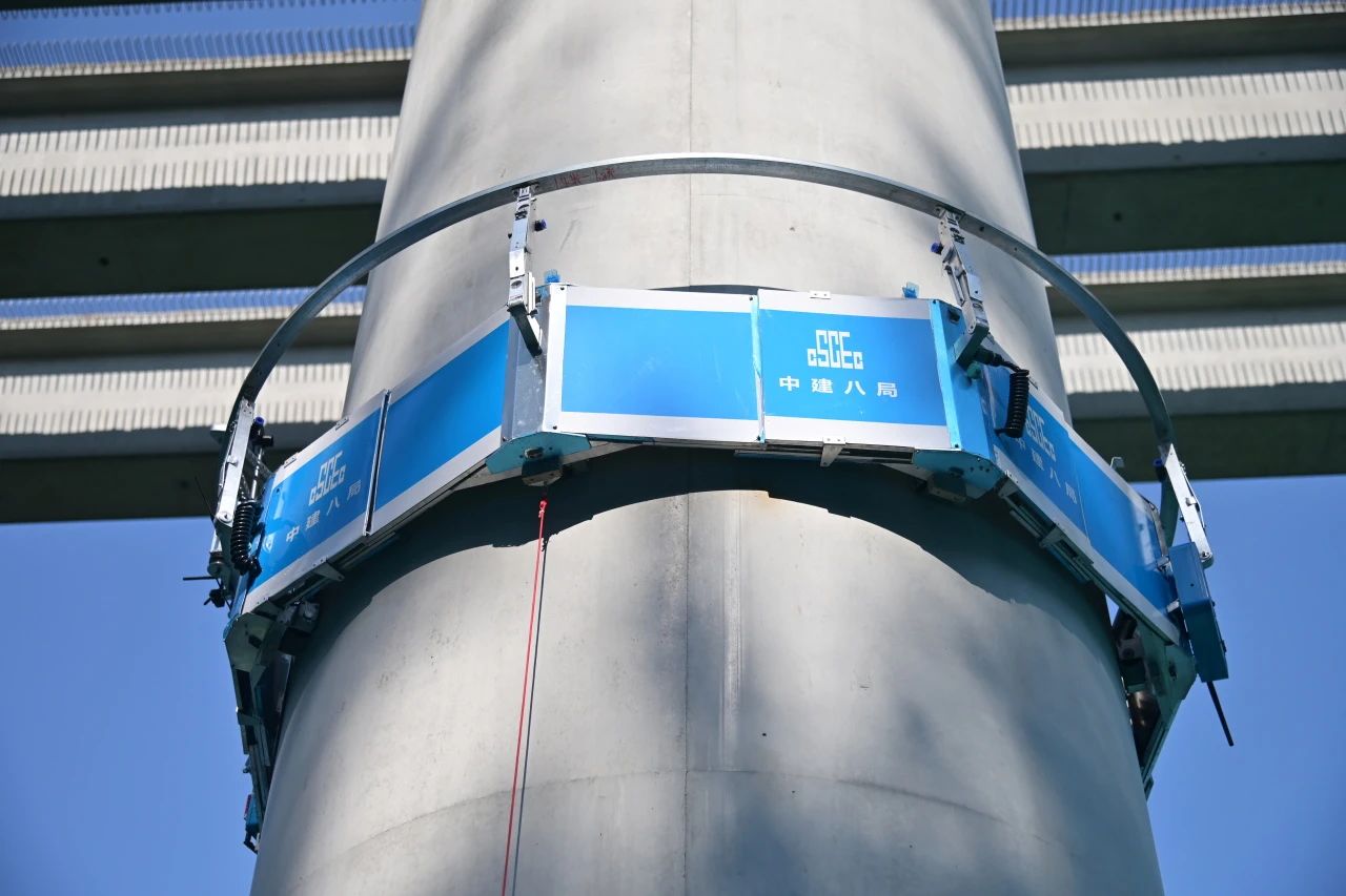 RC智柱俠由折疊式桁架平臺檢測系統(tǒng)、養(yǎng)護(hù)系統(tǒng)及數(shù)據(jù)收集分析系統(tǒng)組成,可快速完成墩柱任一斷面鋼筋保護(hù)層、鋼筋間距檢測,同時(shí)進(jìn)行及時(shí)養(yǎng)護(hù),實(shí)現(xiàn)“高精度、全方位”智能化養(yǎng)護(hù)-檢測作業(yè),檢測效率較傳統(tǒng)方式提升3倍以上,目前在京臺高速齊河至濟(jì)南段改擴(kuò)建項(xiàng)目應(yīng)用。