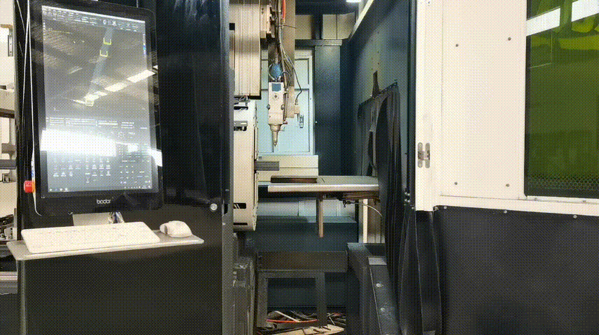 易裝工廠搭載的激光切割擴孔機,可覆蓋目前所有在建幕墻項目裝飾業(yè)務(wù),利用可視化智能操作系統(tǒng)實現(xiàn)轉(zhuǎn)接件和埋板的擴孔以及鋁板幕墻鋼龍骨一體化切割,平均47秒可完成1榀鋼龍骨基層6個斷面的切割工作。