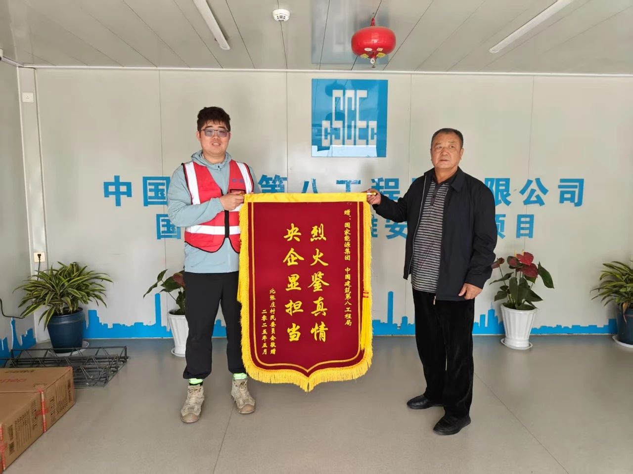 次日,村委會帶著錦旗和感謝信來到項目部,用“烈火鑒真情,央企顯擔當”十個大字表達了村民的感謝,信中特別點贊項目的“三精作風”,即“響應精敏、處置精準、奉獻精誠”,對項目團隊應急救援機制與地企聯(lián)防工作給予了高度肯定。