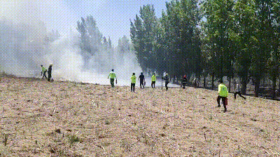 項目救火隊到達火場時,當?shù)叵狸犚惨呀?jīng)抵達,此時的火情現(xiàn)場濃煙蔽空,刺鼻的焦糊味裹挾著熱浪撲面而來,柳絮燃燒形成的火焰借著風勢,沿著干枯植被與低矮灌木叢擴張,極有可能蔓延至兩邊的村莊與農田。
