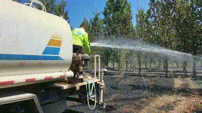大家按照預案快速分成三組,與屬地消防隊開始聯(lián)合行動,一組隊員手持干粉滅火器,以扇形戰(zhàn)術向火場核心推進,撲滅點狀火源;二組隊員駕駛灑水車構建“水幕墻”,截斷火勢蔓延的路徑,并為當?shù)叵儡囇a充水源;三組隊員揮動斧頭鐵鍬,在火場外圍緊急開辟防火隔離帶,嚴防飛火復燃。隨著項目與當?shù)叵狸爢T的通力協(xié)作,1小時后現(xiàn)場明火已經(jīng)基本撲滅,此時火場與麥田僅僅一線之隔。
