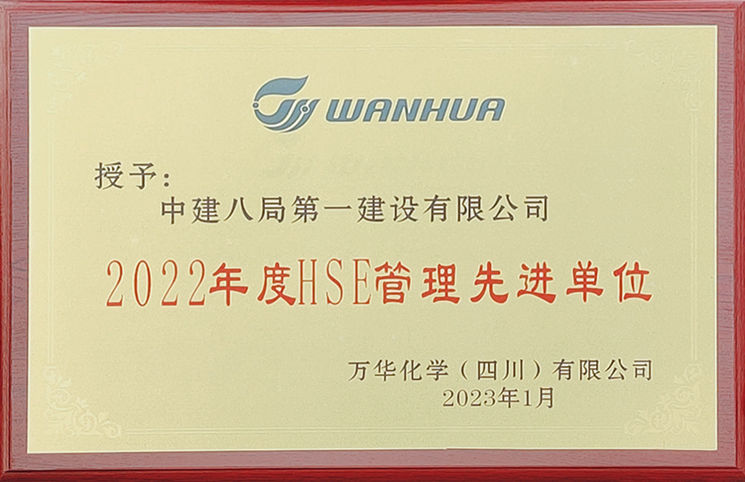 1月28日,眉山市年產(chǎn)5萬噸鎳鈷錳酸鋰正極材料項目部在建設(shè)單位萬華化學(xué)(四川)有限公司召開的“2022年度承包商表彰暨2023年工程建設(shè)動員大會”上榮獲“2022年度HSE管理先進(jìn)單位”稱號。