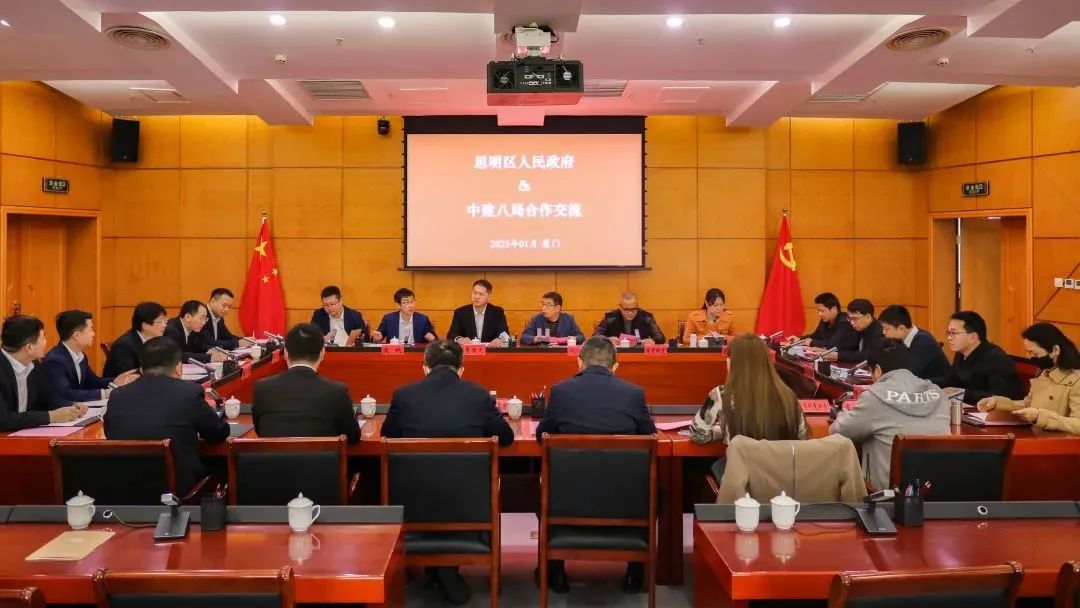 1月13日,中建八局副總經(jīng)理儲(chǔ)小彬赴廈門(mén)開(kāi)展短期工作,拜會(huì)思明區(qū)常委、副區(qū)長(zhǎng)王華琪,并與象嶼集團(tuán)黨委書(shū)記、董事長(zhǎng)張水利,黨委委員、副董事長(zhǎng)方弘哲舉行會(huì)談,就合力推進(jìn)思明區(qū)未來(lái)城市建設(shè)發(fā)展進(jìn)行深入交流。