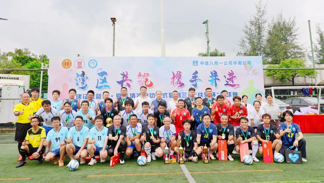 2025-05-22 中建八一與工友競(jìng)技綠茵賽場(chǎng) 近日,廣州市總工會(huì)“送清涼”活動(dòng)暨中建八局一公司華南公司“建證金藍(lán)領(lǐng)”·鐵軍杯足球賽在廣州舉辦。 廣州市總工會(huì)黨組成員、副主席尹宏亮,職工服務(wù)部相關(guān)負(fù)責(zé)同志;中建八一華南公司主要負(fù)責(zé)人,職工及工友代表共100余人參加活動(dòng)。