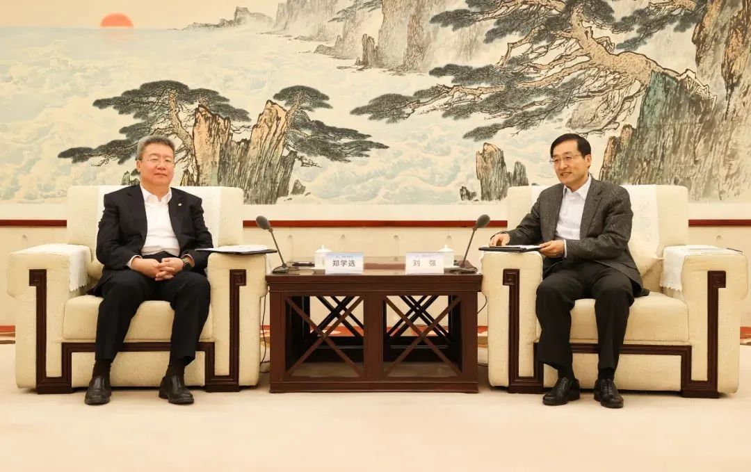 鄭學(xué)選、張兆祥與山東省委常委、濟(jì)南市委書記劉強(qiáng),市委副書記、市長(zhǎng)于海田會(huì)談