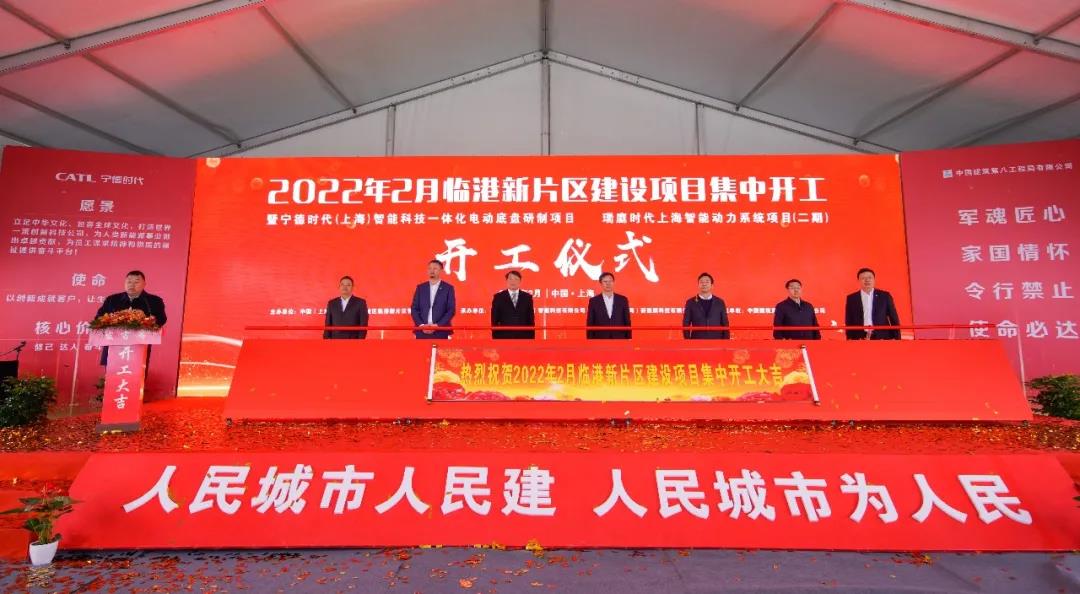 2月19日,臨港新片區(qū)在中建八一承建的寧德時代(上海)智能科技一體化電動底盤研制項目、瑞庭時代上海智能動力系統(tǒng)項目(二期)舉行2022年2月建設項目集中開工儀式。
