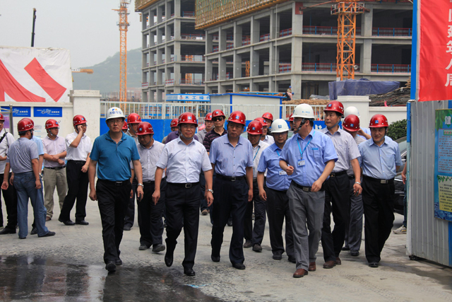 濟(jì)南市住房和城鄉(xiāng)建設(shè)委員會(huì)副主任武兆軍、曲永倫一行蒞臨漢峪金谷A4地塊項(xiàng)目調(diào)研指導(dǎo)項(xiàng)目綠色施工