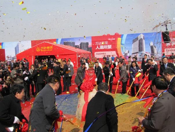 2011年3月18日上午10:08,“青島李滄新商業(yè)地產(chǎn)航母”――李滄萬達廣場工程舉行隆重奠基儀式。青島市政府常務副市長楊宜新、李滄區(qū)委副書記、區(qū)長張杰、萬達商業(yè)地產(chǎn)公司副總裁孫繼泉、中建八局副總經(jīng)理胡書仟等領導出席了開工典禮。