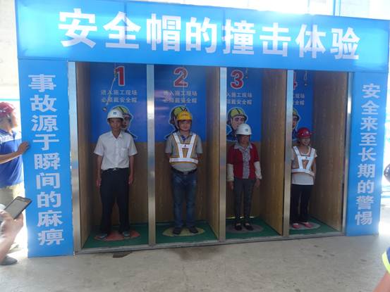在項(xiàng)目安全總監(jiān)朱廣帝的代領(lǐng)下,農(nóng)民工來到體驗(yàn)館,分別進(jìn)行了“安全帶使用體驗(yàn)”、“滅火器使用安全體驗(yàn)”、“綜合用電體驗(yàn)”、“移動(dòng)式操作平臺(tái)安全體驗(yàn)”、“安全帽撞擊體驗(yàn)”、“洞口墜落安全體驗(yàn)”、“平衡木安全體驗(yàn)”、“安全防護(hù)欄桿的倒塌體驗(yàn)”等多個(gè)項(xiàng)目的體驗(yàn)。體驗(yàn)結(jié)束后,項(xiàng)目管理人員還采用電視講解的方式,通過多起安全事故案例,讓農(nóng)民工深切地體會(huì)到安全作業(yè)的重要性,自覺學(xué)習(xí)、掌握安全生產(chǎn)教育的知識(shí)。
