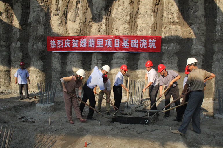 6月30日5時16分,在天津魯能綠蔭里項目施工現(xiàn)場,天津魯能置業(yè)有限公司總經(jīng)理黃先可,副總經(jīng)理郭廣森,北京分公司經(jīng)理張述堅、總工兼天津魯能綠蔭里項目經(jīng)理王洪共同拿起鐵鍬為項目墊層澆筑第一批混凝土,標(biāo)志著魯能綠蔭里項目正式進(jìn)入地下結(jié)構(gòu)施工階段。