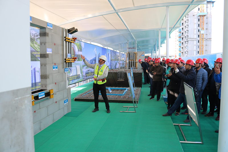 觀摩團一行首先在項目會議室聽取了項目關(guān)于“新技術(shù)應用、質(zhì)量常見問題的亮點做法、BIM應用于智慧建造、揚塵治理措施”等介紹。隨后,觀摩團在項目經(jīng)理張志剛的引導下,先后參觀了海綿城市、透視混凝土地面、鋼板道路、風光互補太陽能路燈、新技術(shù)應用樣板展示區(qū)、各分項工程亮點做法展示區(qū)、智慧建造體驗館、工序樣板層和交房樣板層、安全體驗區(qū)。截至26日下午17時,項目當天已累計接待觀摩人員2125人,預計27日觀摩人數(shù)將達到3000余人。