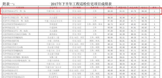 近日,公司濟南魯能泰山7號項目在魯能集團2017年下半年全國工程巡檢中,從42個受檢項目中脫穎而出,實測實量成績獲得98.5分,質(zhì)量風險獲得94.84分,安全文明風險獲得94.76分,綜合成績?yōu)?span>96.65分,勇奪第一名。