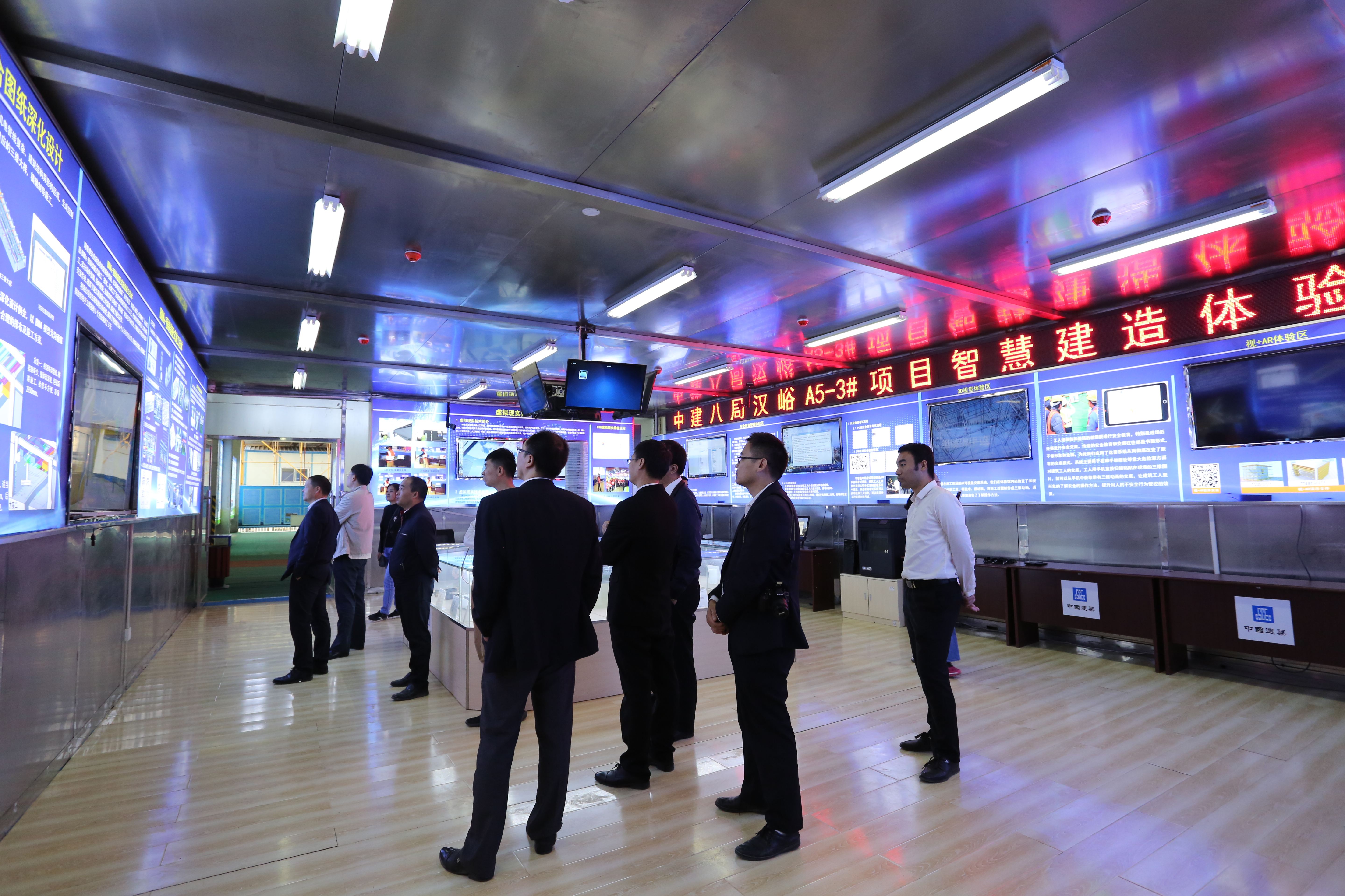 各位領(lǐng)導(dǎo)首先到達(dá)會議室,項(xiàng)目總工魏書圣就項(xiàng)目總體概況、施工進(jìn)度、施工管理、商務(wù)管理、履約管控、科技管理等方面進(jìn)行了匯報(bào)。隨后各位領(lǐng)導(dǎo)在項(xiàng)目經(jīng)理喬元亮的陪同下到達(dá)項(xiàng)目智慧建造體驗(yàn)館進(jìn)行考察,了解了項(xiàng)目在綠色施工、質(zhì)量管理、安全管理、科技管理和總承包管理五大模塊的應(yīng)用以及研發(fā)成果,并對取得的技術(shù)成果表示高度贊賞。最后,各位領(lǐng)導(dǎo)到施工現(xiàn)場進(jìn)行了考察,對現(xiàn)場施工技術(shù)中所采用的鋼制構(gòu)造柱、固液一體垃圾通道等新型施工技術(shù)表示了高度認(rèn)可