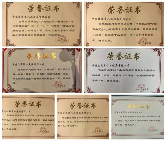 公司擁有房屋建筑工程施工總承包特級(jí)資質(zhì)、市政公用工程施工總承包特級(jí)資質(zhì)、建筑行業(yè)(建筑工程、人防工程)設(shè)計(jì)甲級(jí)資質(zhì)、市政行業(yè)設(shè)計(jì)甲級(jí)資質(zhì)、鋼結(jié)構(gòu)總承包一級(jí)資質(zhì)等。榮譽(yù)見(jiàn)證實(shí)力,一次斬獲七項(xiàng)全國(guó)鋼結(jié)構(gòu)最高獎(jiǎng)。再次證明了公司在鋼結(jié)構(gòu)領(lǐng)域優(yōu)秀的施工和管理能力。(李賀雷)
