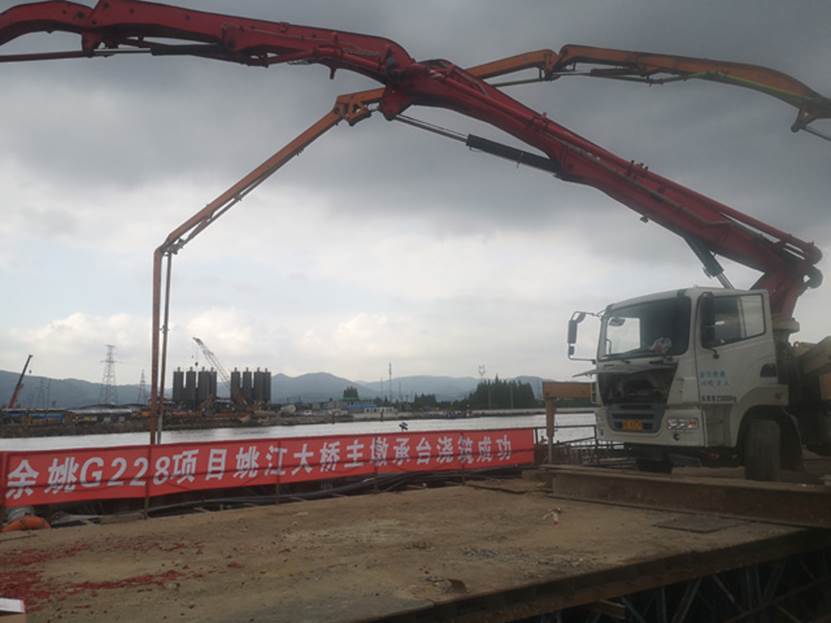 公司首個(gè)深水大體積混凝土承臺(tái)在余姚G228項(xiàng)目順利澆筑