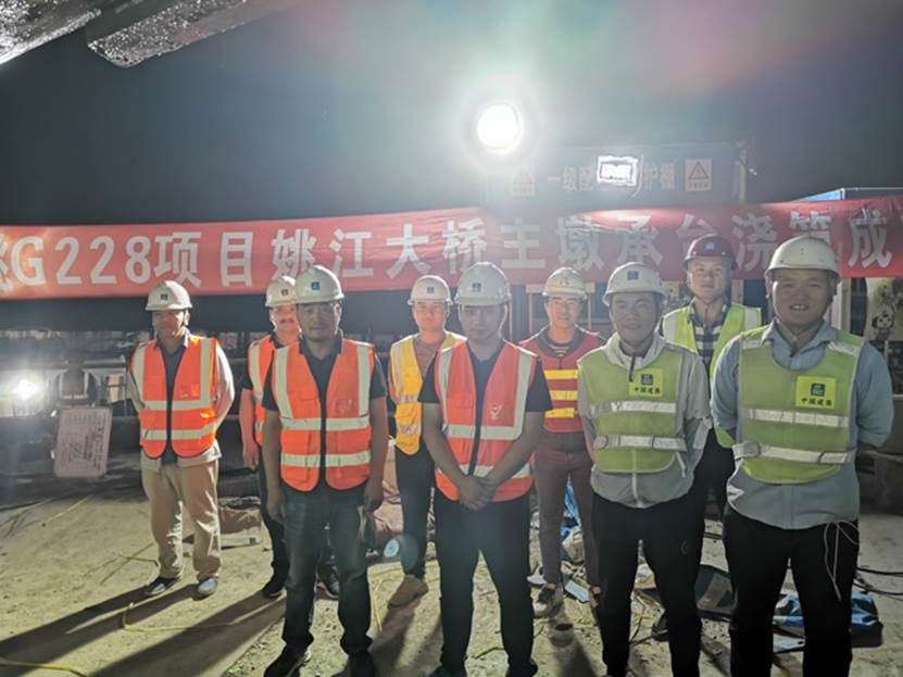 姚江大橋南岸主墩承臺(tái)澆筑現(xiàn)場合影