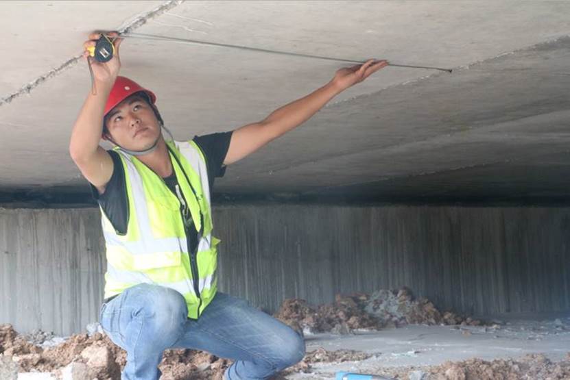 本次驗收共分7組,分別對路基路面、橋梁、交安等部位進行驗收檢測。主要涉及路面平整度、厚度、滲水、車轍、構造深度、路面彎沉、橫向力系數(shù);路基土石方邊坡、排水工程斷面尺寸、鋪砌厚度;上部結構混凝土強度、保護層厚度、構件尺寸(含外觀)、天橋檢測;下部結構墩臺混凝土強度、保護層厚度、構件尺寸、垂直度(含外觀)、小橋涵洞混凝土強度、結構尺寸;橋面橫坡、橋梁混凝土護欄強度、斷面尺寸、標志標線、護欄等數(shù)據收集。