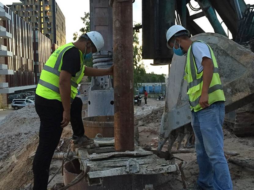 柬埔寨德瓦度假村項(xiàng)目OFFICE-3第一根支護(hù)樁成功灌注