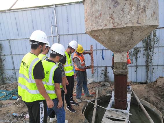 入夏以來,項目成員不畏酷暑,臨建搭設(shè)通過大家不懈努力最終落成。項目成員從第二次推進會以來,以大干快上的信念砥礪前行。面對地質(zhì)穩(wěn)定性差、適宜性差的地質(zhì)條件,項目人員集思廣益、部門之間相互協(xié)調(diào),共同為樁基施工奠定基礎(chǔ),保障了首樁灌注圓滿完成。