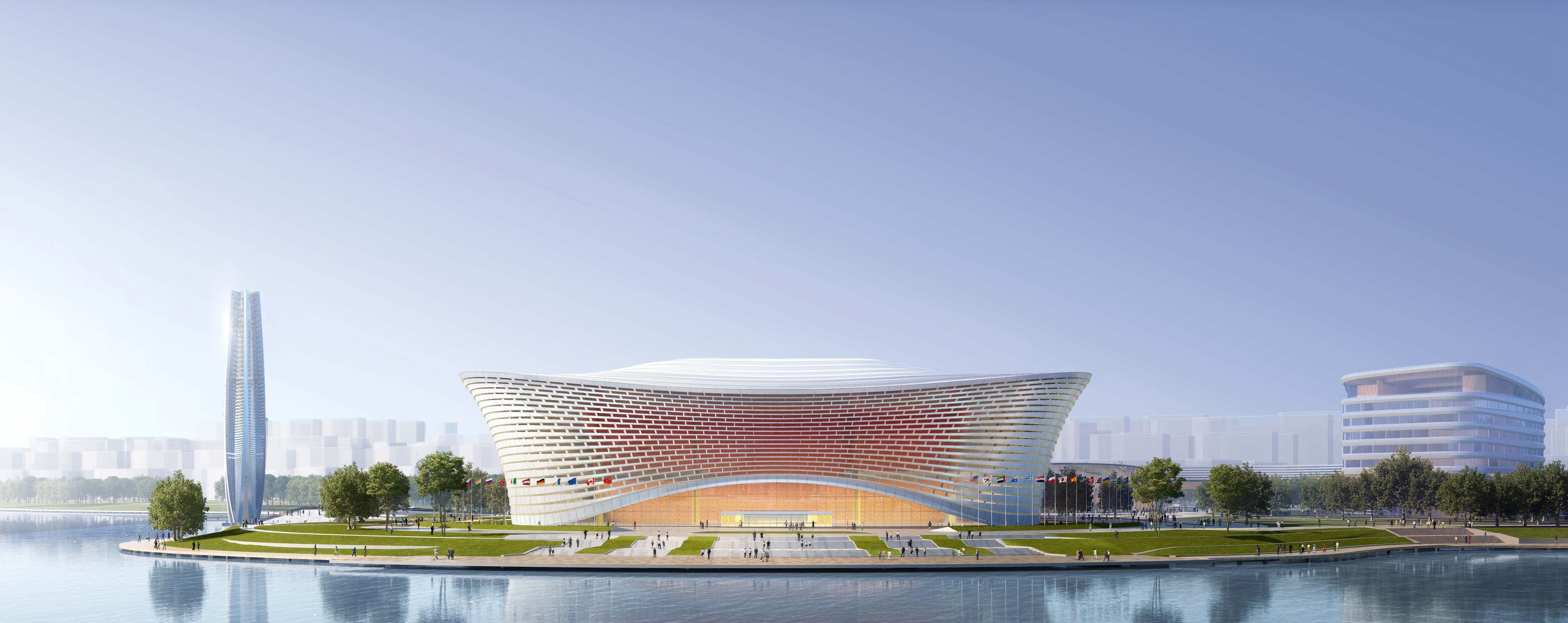 鄭州國際文化交流中心項目位于河南鄭州鄭東新區(qū)龍湖北岸,建筑面積約25.8萬㎡,分會議中心、會展中心、酒店三大功能。建成后將成為空中絲綢之路國際論壇永久會址,滿足舉辦高規(guī)格、綜合性國際首腦級會議的需求,進(jìn)一步完善鄭州國家城市功能,提升鄭州國際都市形象。