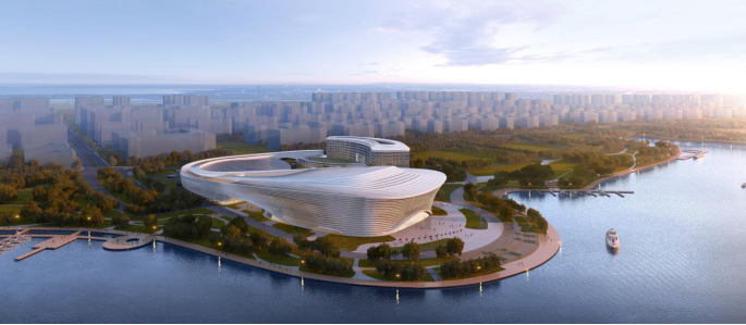 鄭州國際文化交流中心項目位于鄭州市鄭東新區(qū)龍湖北岸,占地約10萬平方米,總建筑面積約31.4萬平方米,分為會議中心、會展中心、酒店三大功能,以“璞玉如意、和合一體”為設(shè)計理念,是省市兩級政府年度重點工程,建成后將成為空中絲綢之路國際論壇永久會址,進一步完善鄭州國家城市功能。